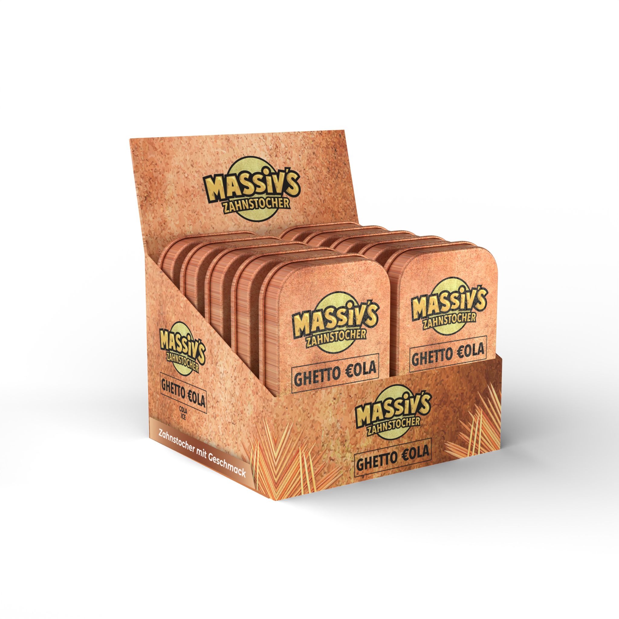 Erlebe frischen Atem mit Style: Die Massiv’s Zahnstocher „Ghetto €ola – Cola Ice“ bringen urbanen Lifestyle in deine Hosentasche. In Kooperation mit Rapper Massiv, 100 vegane Zahnstocher in der praktischen Metalldose – mit Cola Ice-Aroma. Zuckerfrei, kalorienfrei, stylisch.